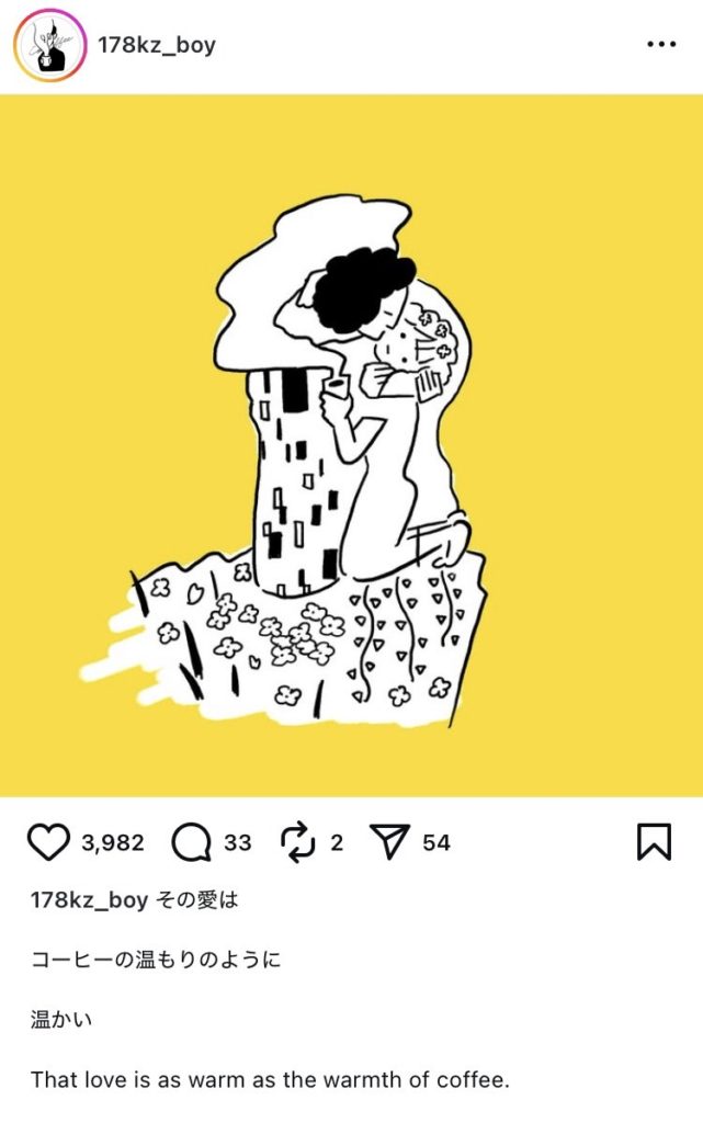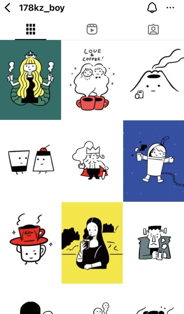 イラストレーターのCOFFEE BOY氏が作品を発表しているInstagram。そのアカウントは、ほっとひと息ついてコーヒーを楽しんでいるイラストで溢れている。